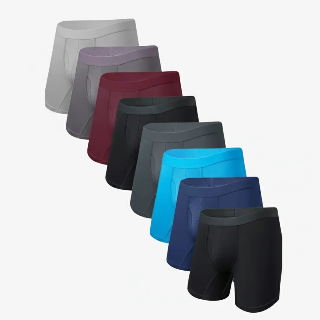 Our boxers feature a dual pouch for optimal support and 4-way stretch fabric for ultimate flexibility. They move with you, providing a perfect fit that's both secure and incredibly comfortable, enhancing your freedom.